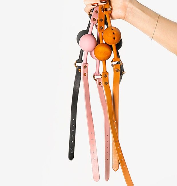 高品質な本革を使用したSMグッズの口枷で、異なるサイズの球体が複数付属しています。